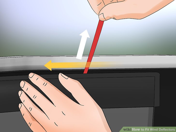 4.Test the wind deflector for adherence. After you’ve bonded the wind deflector to your car, try to wiggle the deflector up and down. If the deflector has adhered properly, it shouldn’t move. Apply more pressure to loose areas or adjust the wind deflector’s positioning if it does move.